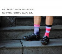 ・左右で異なる幅のストライプを組み合わせたおしゃれでコスパに優れるサイクリングソックス、『ライン/ライン』。