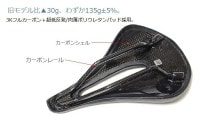・ソフトレザー(表面)、低反発ポリウレタン(パッドの中身)、3Kカーボン(フレーム、レール)