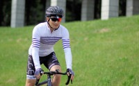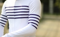 5本のネイビーのラインが清潔感を醸し、大人の休日ライドをおしゃれに演出します。