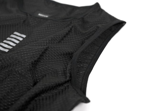 ◆伸縮性と軽量性に優れるオープンセルメッシュのノースリベースレイヤー。